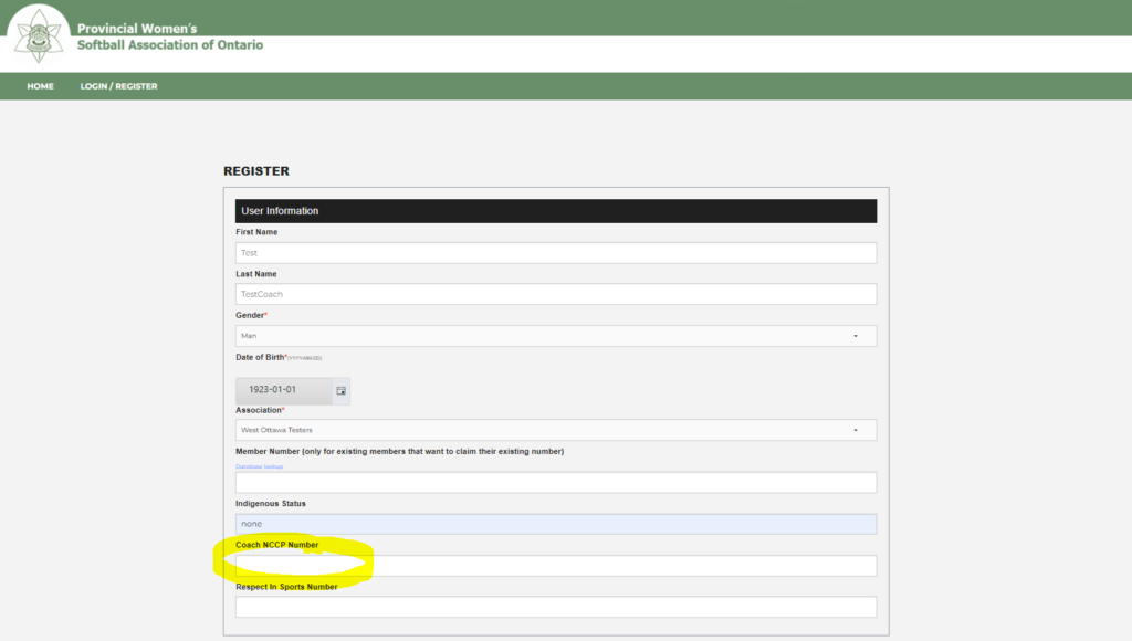 When any user of the MRS registers, they are required to fill in all the mandatory data points in the user profile before submitting. Since not all members will become a coach or an assistant coach, the Coach NCCP Number is one of those fields in the profile that is not mandatory. There is nothing preventing coaches or assistant coaches from filling in this number during the initial data entry process.