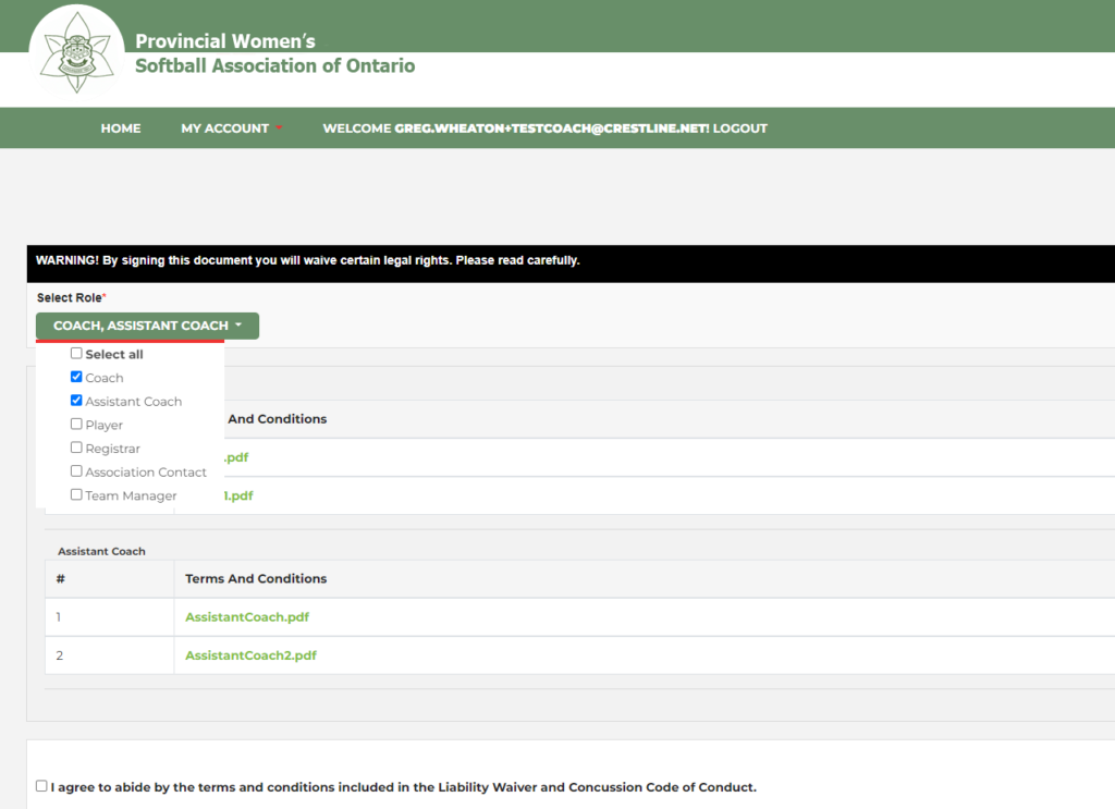 Users who wish to become coaches or assistant coaches will have to select the appropriate role during the user registration process.